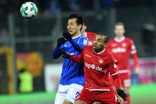 Dong-Won Ji (l) und Kaiserslauterns Leon Guwara kämpfen um den Ball.