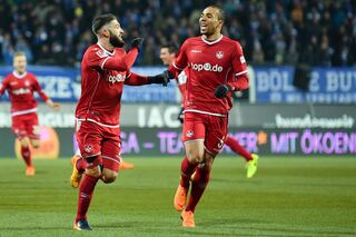 Brandon Borrello (l) und Leon Guwara jubeln über das Tor.