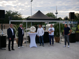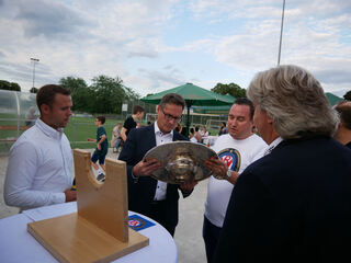 Auf einem Tisch stand das Replikat der Meisterschale von 1949 - ein an diesem Tag sehr beliebtes Fotomotiv.