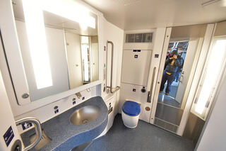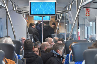 ... die sich ein Bild von der Innenaustattung des Zuges machen konnten, der bis zu 140 Stundenkilometer schnell fahren kann.