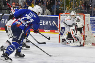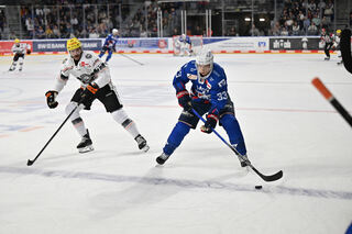 Der Adler Markus Haennikaeinen (33) gegen Daniel Pfaffengut (77).