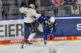 Mannheims John Gilmour (Nr. 7) gegen Wolfsburgs Björn Krupp (Nr. 5)