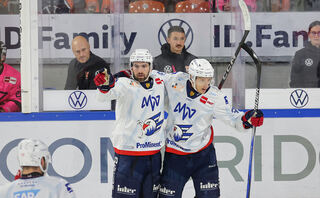 Markus Haennikaeinen (Adler Mannheim) erzielt das 1:0
