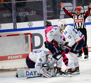 Arno Tiefensee (Adler Mannheim) rettet die Adler beim Spiel gegen die Grizzlys Wolfsburg