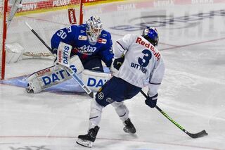 Muenchens Dominik Bittner (Nr.3) gegen Mannheims Arno Tiefensee (Nr.30) beim Spiel.