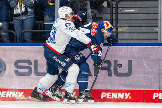 Markus Haennikaeinen #33 (Adler Mannheim), Jonathon Blum #24 (EHC Red Bull Muenchen), EHC Red Bull Muenchen vs. Adler Mannheim, PENNY DEL, PlayoffViertelfinale, 19.03.2025 beim Spiel in der Penny DEL, EHC Red Bull Muenchens - Adler Mannheim. Foto © PIX-Sportfotos *** Foto ist honorarpflichtig! *** Auf Anfrage in hoeherer Qualitaet/Aufloesung. Belegexemplar erbeten. Veroeffentlichung ausschliesslich fuer journalistisch-publizistische Zwecke. For editorial use only.