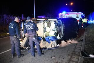 Ein Autofahrer verlor gegen 18.10 Uhr die Kontrolle über sein Fahrzeug, überschlug sich und kam im Unfallverlauf auf der Seite liegend zum Stehen.