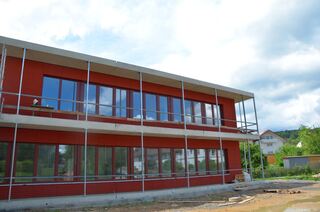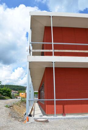 Baustellenrundgang im Neubau der Gemeinschaftsschule am Schlossplatz in Limbach.