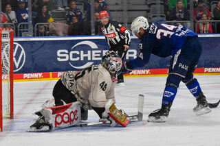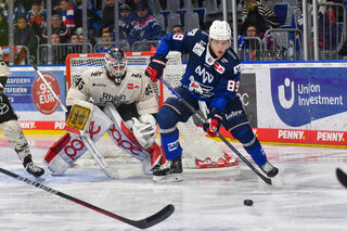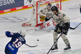 Auch Mannheims Tom Kühnhackl versucht sich am Kölner Keeper, kann aber auch keinen Treffer erzielen.