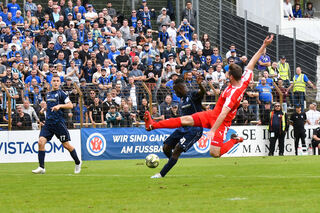 Jan-Hendrik Marx (re.) im Kopfballduell mit Yannick Haag.