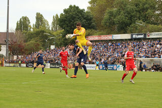 VfR-Torwart Marcel Lentz pflückt den Ball runter und zeigt, wer Herr im Strafraum ist.