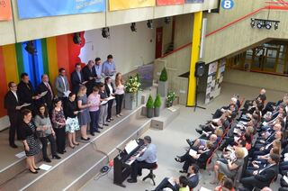 Mit einem Festakt hat das Ganztagsgymnasium Osterburken am Freitag sein 50-jähriges Bestehen gefeiert. Gäste aus der Wissenschaft und der Kommunalpolitik hielten Festansprachen. Die Big-Band, der Lehrerchor, das GTO-Blasorchester und eine Zumba-Gruppe aus Schülerinnen untermalten die Feier.