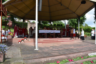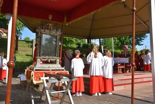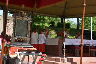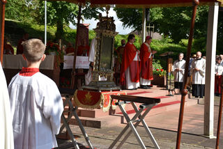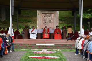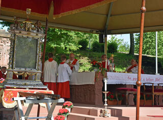 Das Pontifikalamt am Großen Blutfeiertag fand auf dem Wallfahrtsplatz hinter der Basilika statt.