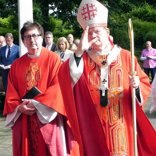 Stadtpfarrer und Wallfahrtsleiter P. Josef Bregula OFM Conv (links) und Erzbischof Stephan Burger (rechts).