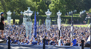 Die Fans des SV Waldhof Mannheim zogen am Sonntag vom Mannheimer Wasserturm zum Carl-Benz-Stadion.