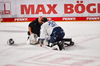 Nach einem unglücklichen Foul kann Johan Christer Mattsson (Mannheim) nicht mehr weiterspielen. Foto © PIX-Sportfotos
