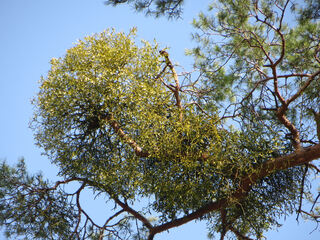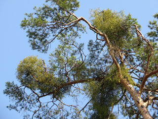 Die Mistel nistet sich in der Krone der Kiefer ein ...