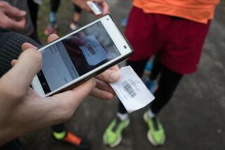 Über den Barcode wird die Zeit der Läufer ausgelesen.