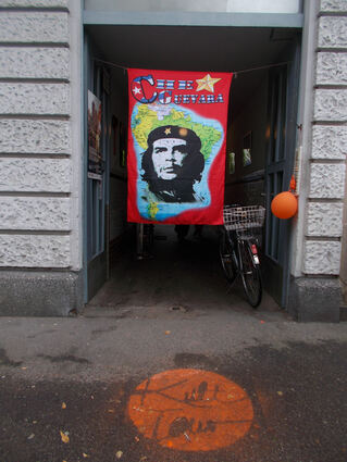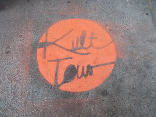 Der orangene Kreidekreis ist das Erkennungszeichen für die Ausstellungsorte der KultTour.