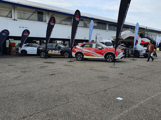 Vor der Boxengasse können einige E-Autos betrachtet werden.