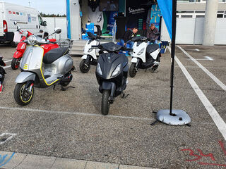 Diverse E-Roller stehen zur Testfahrt bereit.