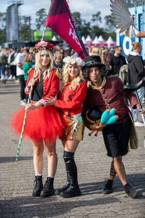 Laura und Julia haben sich ins ihr bestes Festivaloutfit geworfen, beide sind aus Bielefeld angereist.