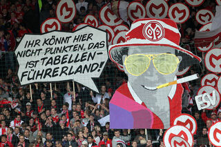 Die Fans vom FSV Mainz feuerten ihre Mannschaft mit dieser Choreo an, die auf den Film "Angst und Schrecken in Las Vegas" anspielt. (Bild:dpa)