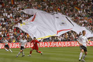 Die Choreografien der Nationalmannschaft werden vom Fanclub, der zum DFB gehört, organisiert. Diese Choreo wurde bei der WM 2006 hochgehalten. (Bild: dpa)