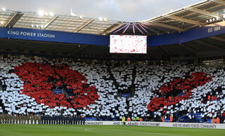 Bei dem Premier-League-Spiel Leicester City gegen FC Everton im Oktober 2017 stellte diese Choreografie eine riesige Mohnblume dar. (Bild:dpa)