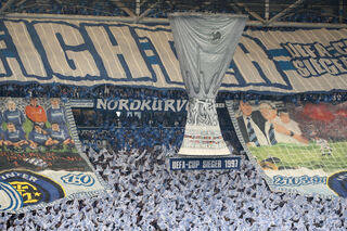 Die Anhänger des FC Schalke haben zum 20. Jubiläum des UEFA-Pokal-Siegs ungefähr 120 000 Euro in diese Choreografie gesteckt.