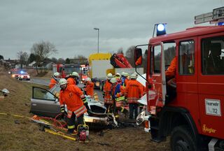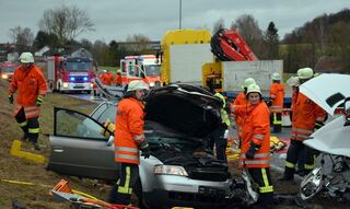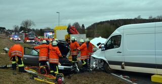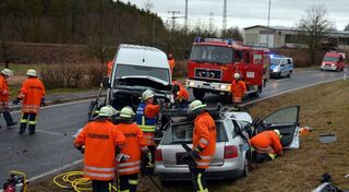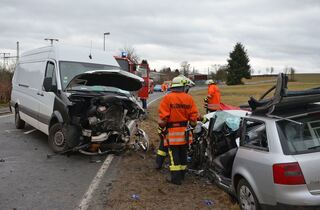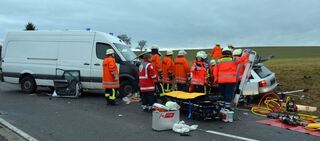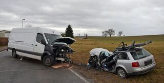 Bei dem Versuch, einen Lkw mit Anhänger sowie einen Kleintransporter zu überholen, ist am Dienstagmorgen (28. Februar 2017) auf der L 520 bei Großeicholzheim der Fahrer eines Mercedes Sprinters mit einem entgegenkommenden Audi A6 frontal zusammengestoßen.