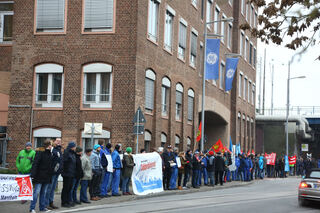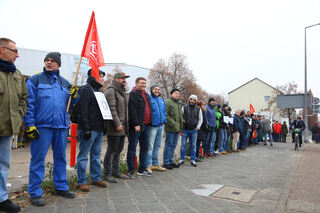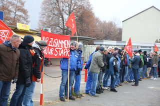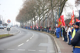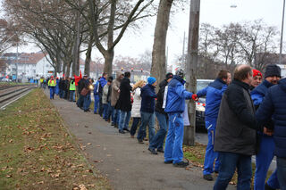... mit einer Menschenkette um das Werk in...