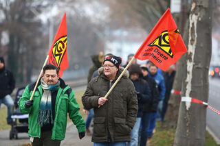 ... den Erhalt ihrer Arbeitsplätze demonstriert