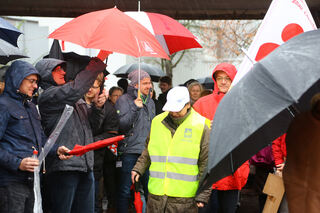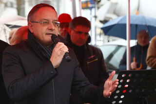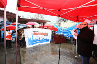 IG-Metall Chef Klaus Stein sprach vor den Protestierenden.