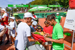 Radu Albot gibt ein Autogramm.