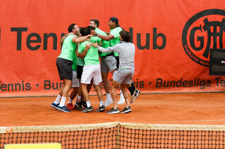 So sehen Sieger aus: Gruppenbild von Tennis-Bundesligist Grün-Weiss Mannheim.