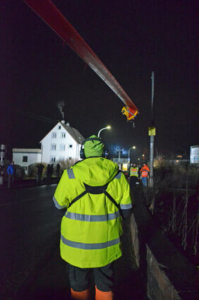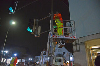 Probleme bereitete unter anderem die Fußgängerampel, die sich zunächst nicht abmontieren ließ.