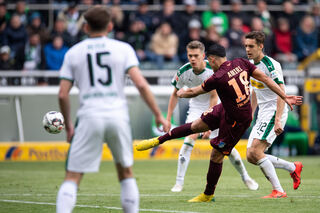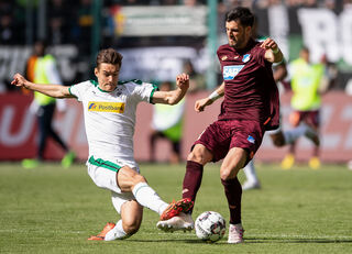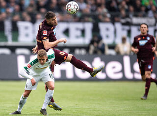 Ermin Bicakcic behält gegen Thorgan Hazard (li.) die Lufthoheit.