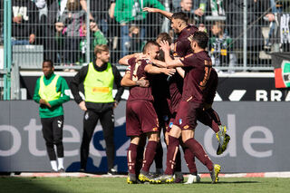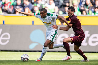 Textiltest: Florian Grillitsch wird von Alassane Plea (li.) am Trikot gehalten.