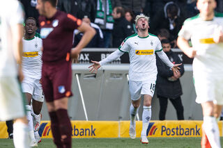 Gladbachs Torschütze Josip Drmic jubelt nach seinem Treffer zum 2:2.