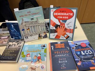 Buttons und Bleistifte als Werbung für die Demokratie.