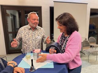 Grünen-Gemeinderätin Sabrina Arns im Gespräch mit Petrus van Nunen.