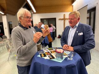 CDU-Gemeinderat Rainer Hege (r.) im Gespräch mit einem Bürger.
