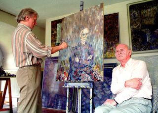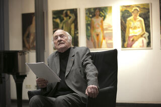 Franz Mazura - einmal in echt, einmal von Walter Stallwitz gemalt. Bild: Rinderspacher