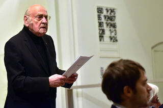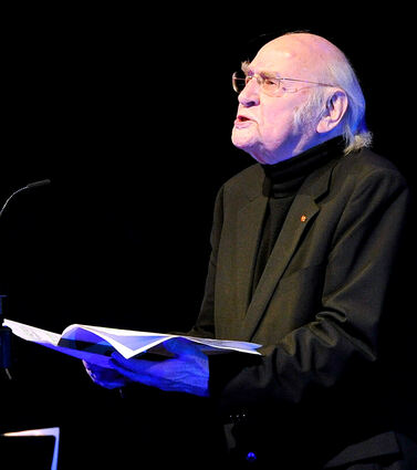 Opern-Weltstar Franz Mazura las 2014 in der Kulturscheune bei der Vernissage zur Werkschau Emil Szymannskys aus dem Buch „Weitermalen!“ von Stephan Froleyks.