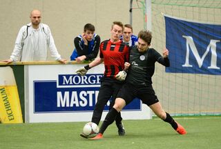 Von links: Viernheims Henrik Hofstaetter (hinten) und die Riedroder Christian Baunach, Keeper Jannick Hueter und André Moos.