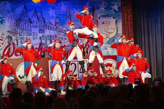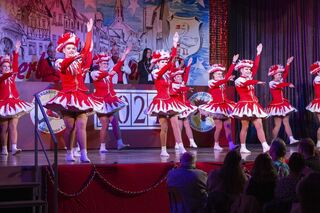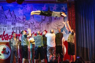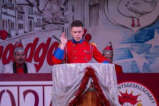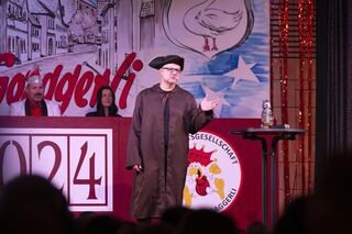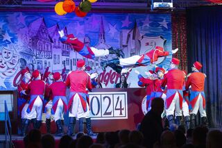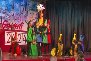 Die Werbacher Goaggerli gackerten bei ihrer Prunksitzung am Samstag, 27. Januar 2024, über so manches Ortsgeschehen genüsslich drauf los.
