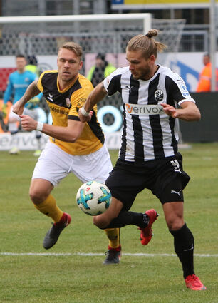 Spielszene mit Rúrik Gíslason in der Liga-Partie gegen Dynamo Dresden im April dieses Jahres im BWT-Stadion am Hardtwald.