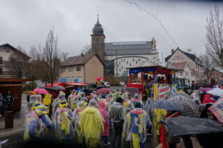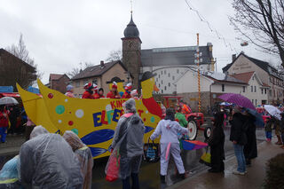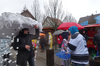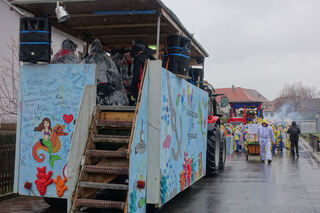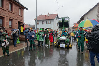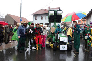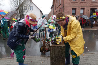 Die Fastnachter der „Freya Limbach“ schickten den Rasenmäher der Fußballer auf seine letzte große Fahrt.