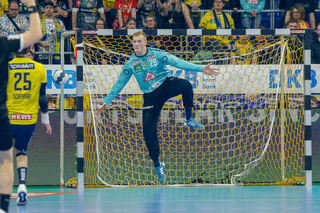 Löwen-Torhüter David Späth macht sich ganz breit,...